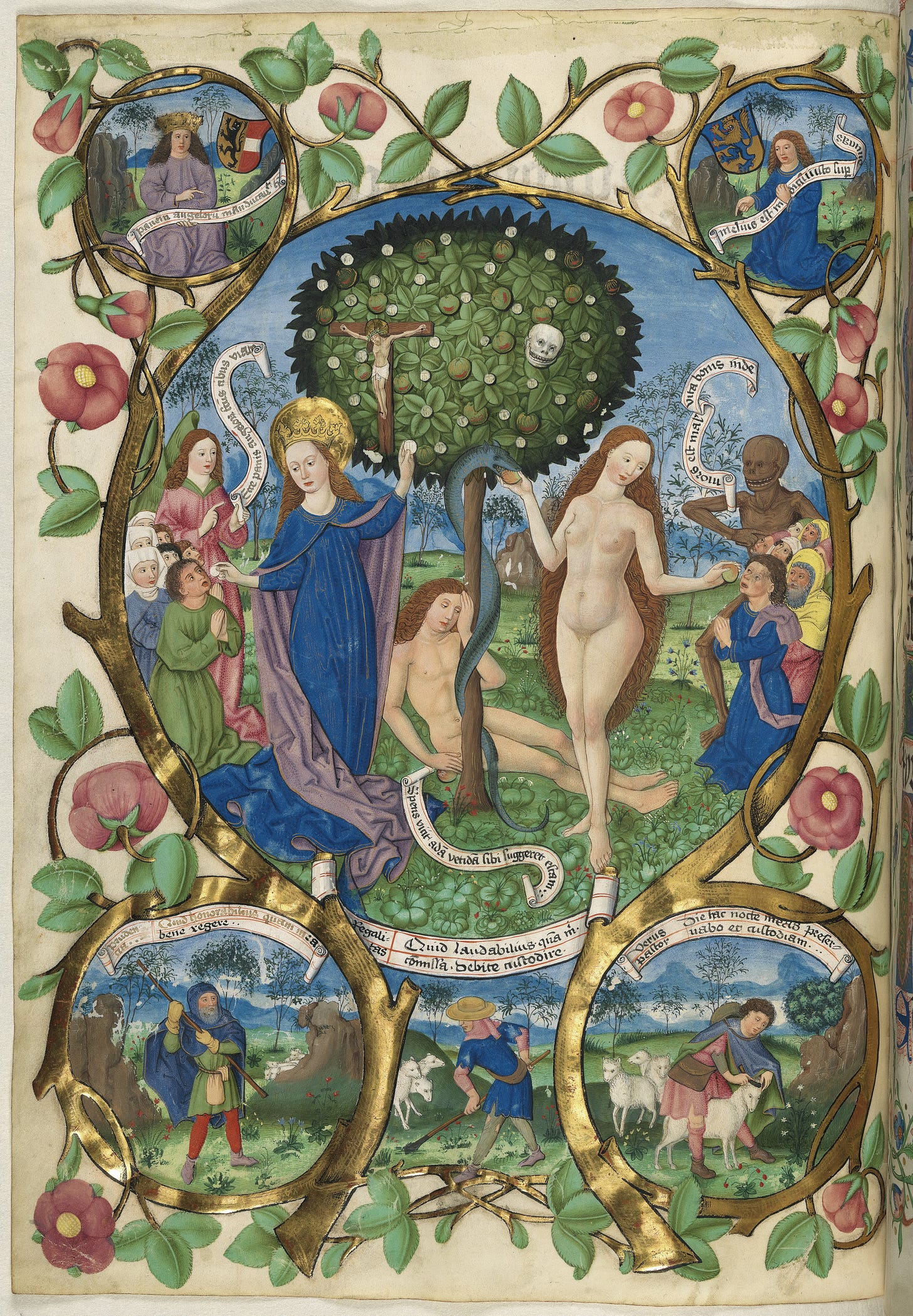 As a universal mother with a hunger for knowledge of both good and evil, Eve bears a resemblance to this archetype. Eve was cast down as a sinner for her hunger, while Mary—called New Eve by devotees beginning in the second century—was lifted up as a redemptive feminine figure. The above image, a 1481 manuscript illumination by Berthold Furtmeyr called The Tree of Death and Life, illustrates the contrast between these two mothers: Eve is the “mother of all the dead,” bearing sin and death into the world, while Mary is the “mother of all the living.”