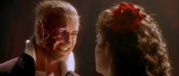 In both films, neither self is the true self. The real is somewhere in between. If Dorian and Elisabeth could accept that beauty changes with time and smooth skin isn’t worth a deal with the devil anyway (the devil being the beauty industry in the latter case), there would be no monstrous transformation. Reaching for the ideal causes the perception of the real to move in the opposite direction. But nature has no need for opposites; human reality is that ambiguous space of change and subjectivity between heaven and hell.